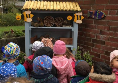 Im Rahmen der „Bildung für nachhaltige Entwicklung“ (BNE) gibt es seit März 2017 in unserem Kindergarten das Projekt „Wildbienen-Allee“. Dabei ist ein großes Bienenhaus entstanden und der Garten wurde mit bienenfreundlichen Pflanzen…