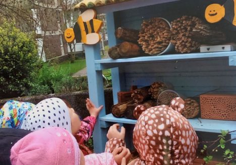 Im Rahmen der „Bildung für nachhaltige Entwicklung“ (BNE) gibt es seit März 2017 in unserem Kindergarten das Projekt „Wildbienen-Allee“. Dabei ist ein großes Bienenhaus entstanden und der Garten wurde mit bienenfreundlichen Pflanzen…