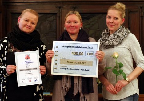 Zum sechsten Mal in Folge erhielt der Kindergarten Schatzkinder die KITA21 Auszeichnung und darf sich weiterhin Leuchtturm-Kita nennen. "Ziel von Bildung für eine nachhaltige Entwicklung in Kindertageseinrichtungen ist es, den Kindern…25/09/2018Harburger Nachhaltigkeitspreis – 2017