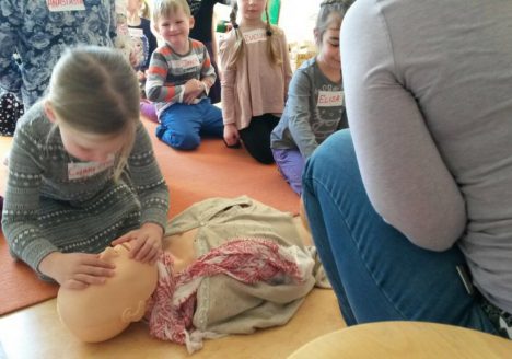 Am 28.03.2017 haben unsere Vorschulkinder lebensrettende Sofortmaßnahmen mit der Kursleiterin India Roth kennen gelernt und praktisch geübt. Inhalt des Kurses: – Lebensgefahr erkennen – Eine Chance geben „Atmung beschützen“ – Richtig Hilfe…